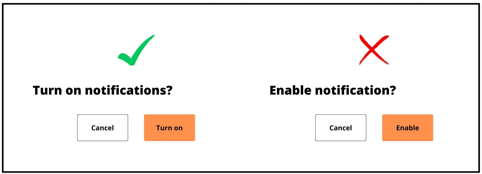 Action verbs should be used, not generic words. "Yes/No" should be avoided as they may create ambiguity and confusion for users.