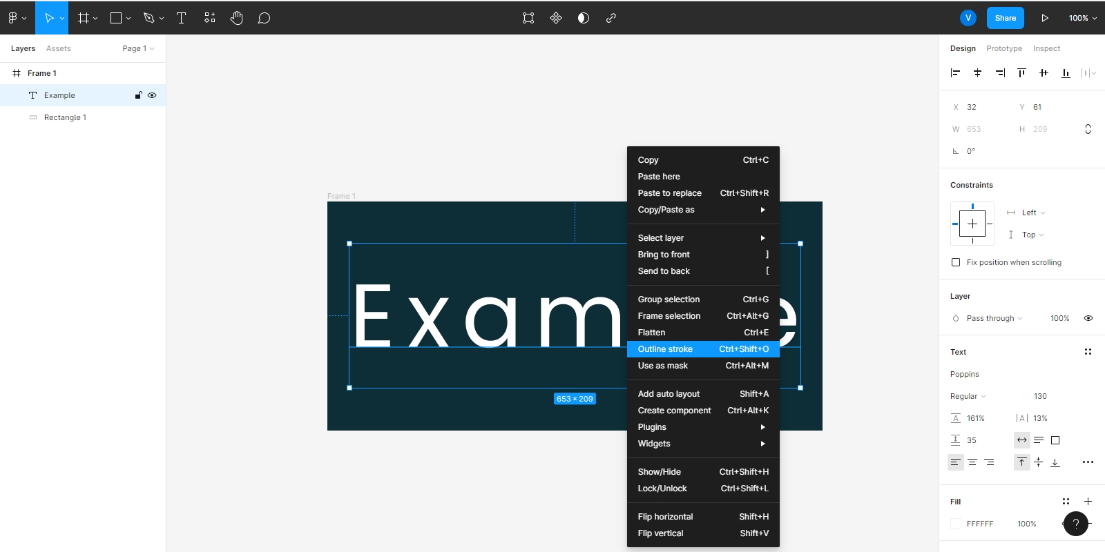 Then, select the text, right-clicked and outline the text.