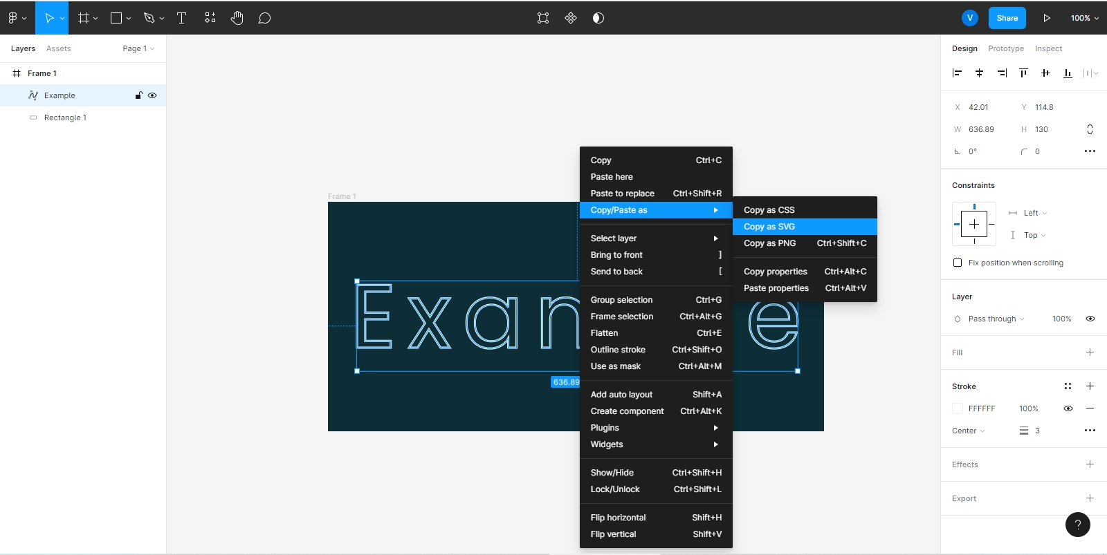 Finally, right-click the text selection and choose to copy it in SVG format. You've reached the halfway point!