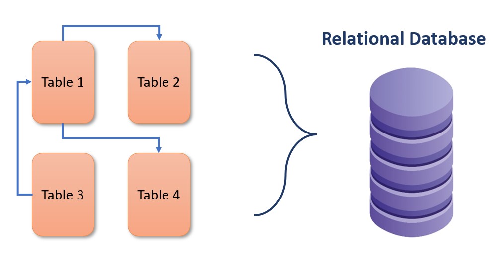 The relational database is composed of multiple tables.