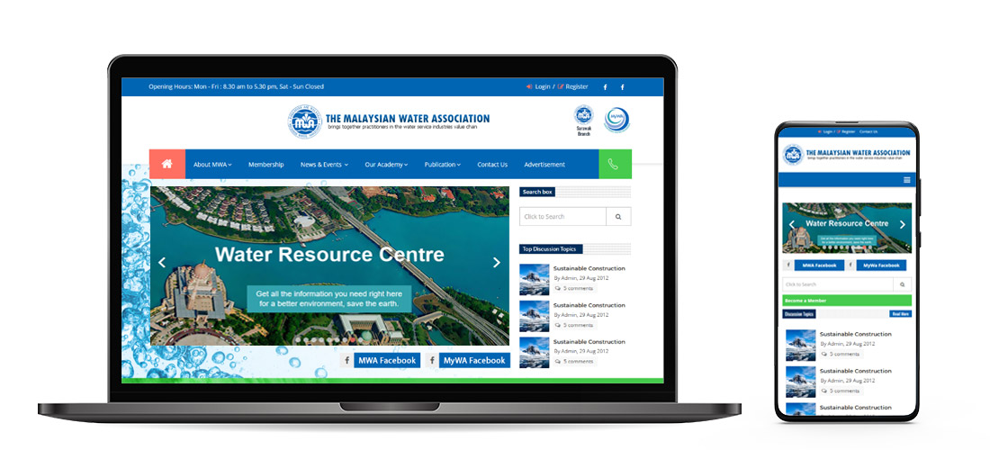 The Malaysian Water Association (MWA) is a platform that brings together practitioners in the water service industries value. The MWA’s membership consists of both individuals and organisations. MWA plays an important role bringing about enhancement of the knowledge and skill of its members and promotes awareness of water issues among the public.