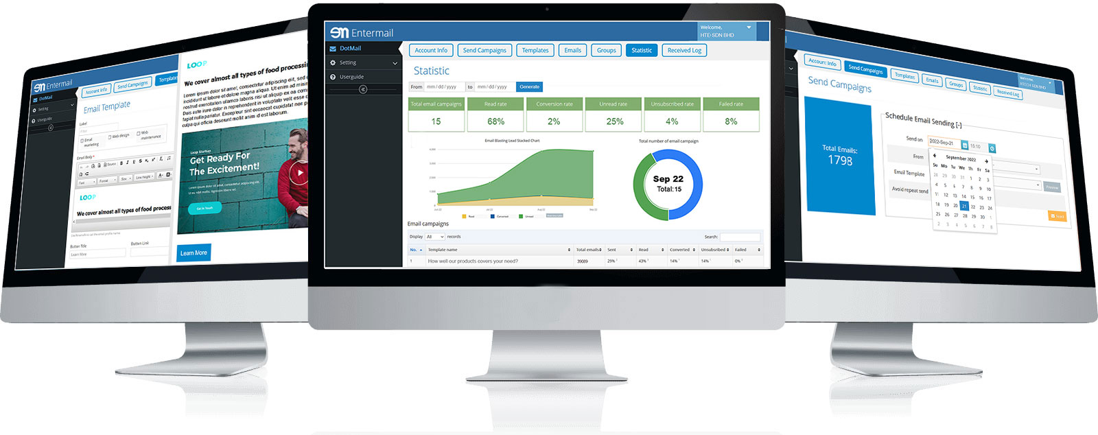 Entermail is an Email Marketing which is an electronic mailing, sent all at once to a large mailing list even one press. This is typically used by marketers who want to send email in a large volume. They can customize e-mail template design and send an eye-catching email. The purpose of e-mail marketing is send out e-greeting card, advertisements or promotions to their customer or relative.